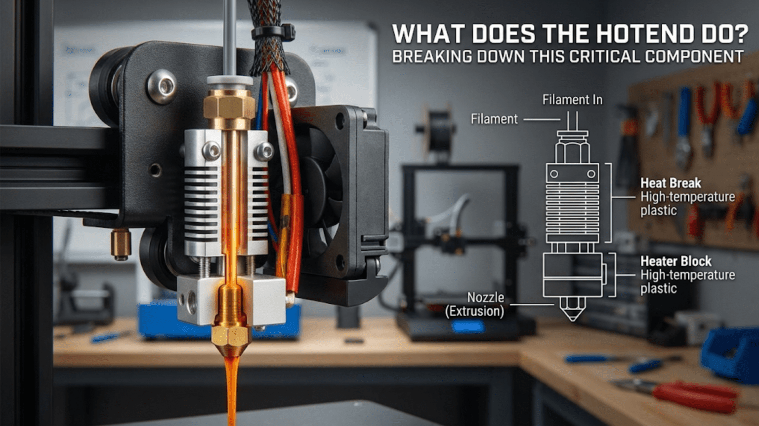 Learn what a 3D printer hotend does, how it works, and why it’s critical. Comprehensive guide to hotend components and functions.