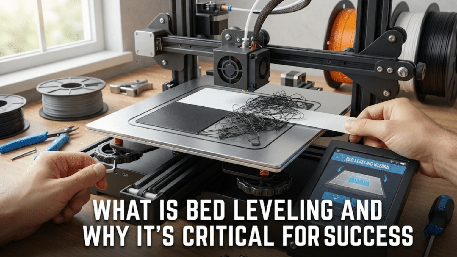 Master bed leveling for perfect 3D prints every time. Learn manual leveling, auto bed leveling, troubleshooting techniques, and why the first layer depends on proper bed alignment.
