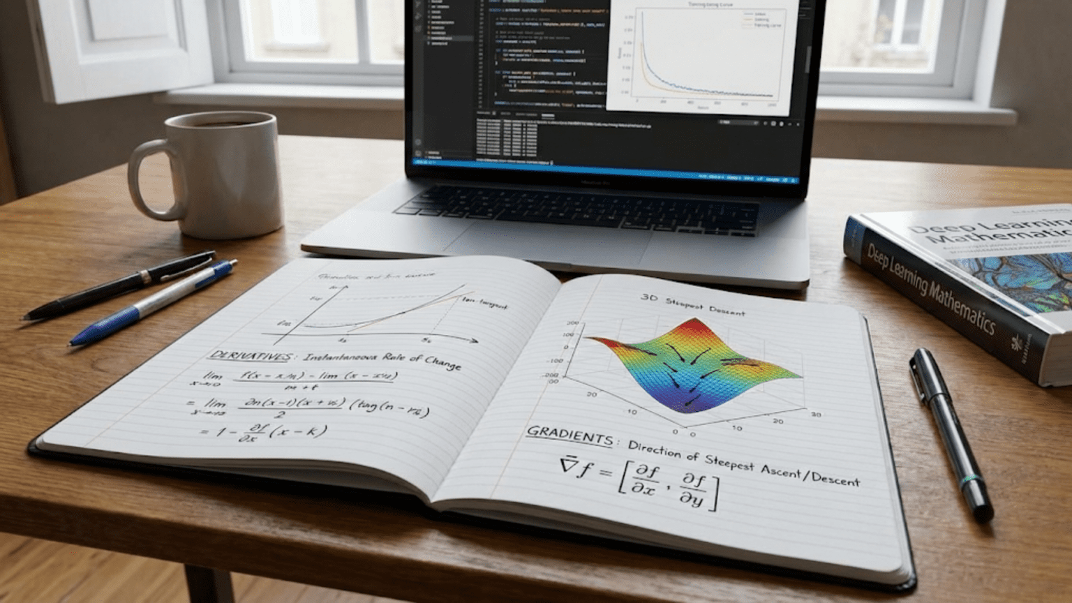 Derivatives and gradients are the calculus concepts that make learning possible in machine learning. When you hear about gradient descent, backpropagation, or how neural networks learn, you’re hearing about derivatives in action. The derivative tells you how a function changes when you change its input. In machine learning, it tells you how your model’s error changes when you adjust its parameters. This information is precisely what you need to improve the model—if you know that increasing a particular weight will increase the error, you should decrease that weight instead. Derivatives provide this cause-and-effect relationship that guides learning.