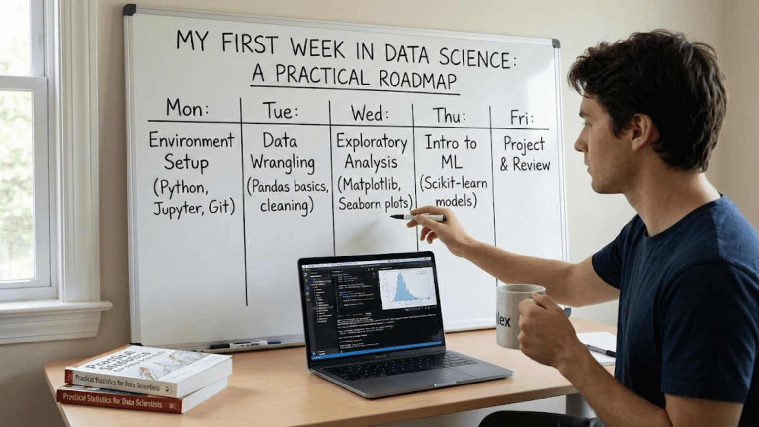 Start your data science journey right with this practical first-week roadmap. Learn what to focus on each day, from Python basics to your first data analysis project.